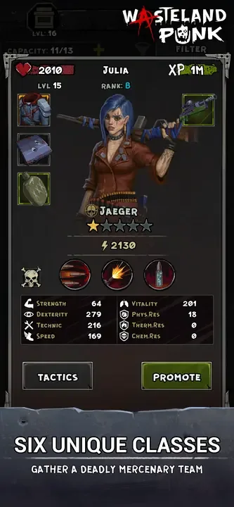 Wasteland Punk es un salvaje RPG postapocalíptico en el que te adentrarás en páramos radiactivos y pantanos impenetrables, habitados por bandidos, mutantes y algo mucho más peligroso... ¡Mata, rebusca, fabrica y sobrevive a cualquier precio!